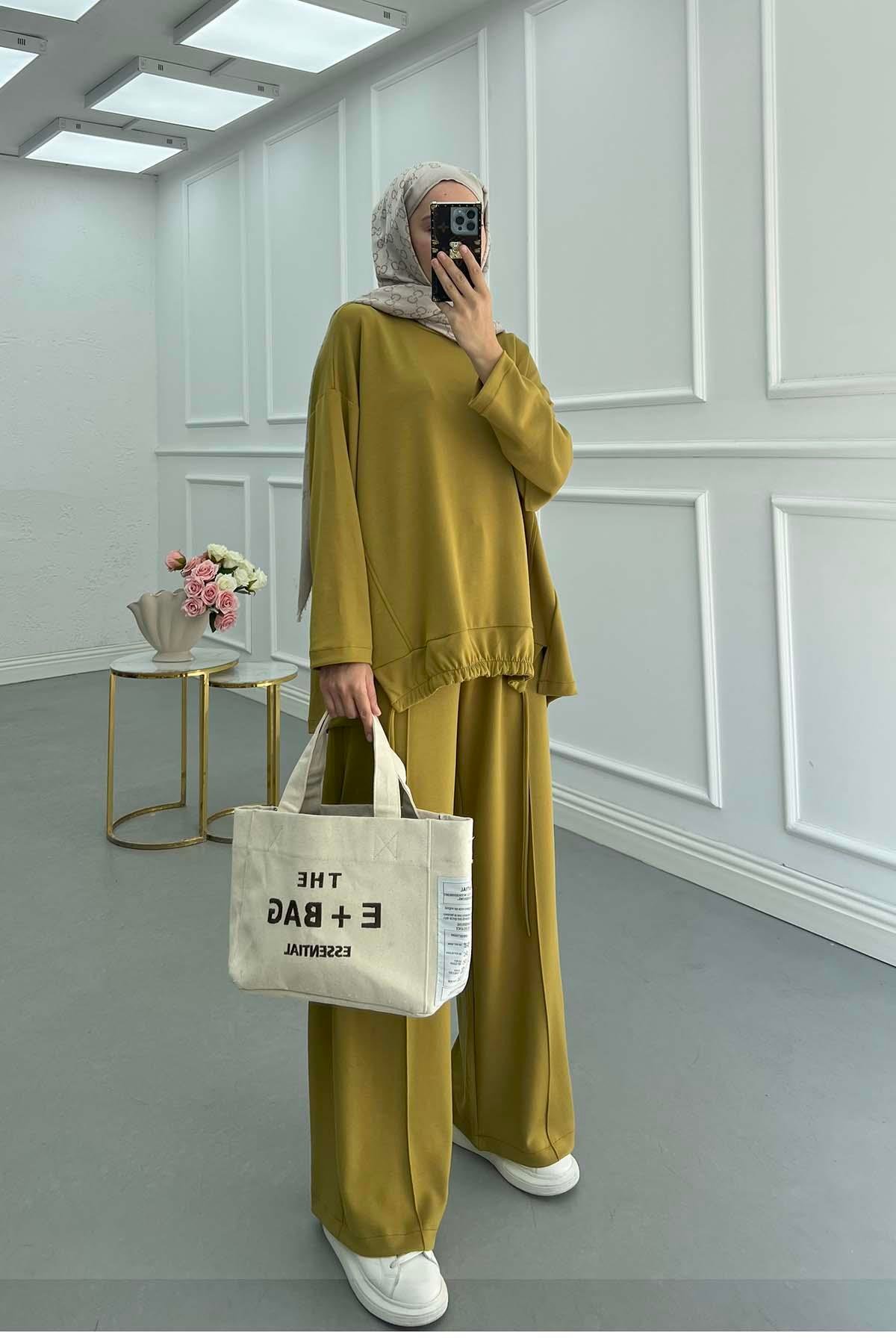 Arkası Uzun Eteği İp Detaylı Oysh Takım Yağ Yeşili