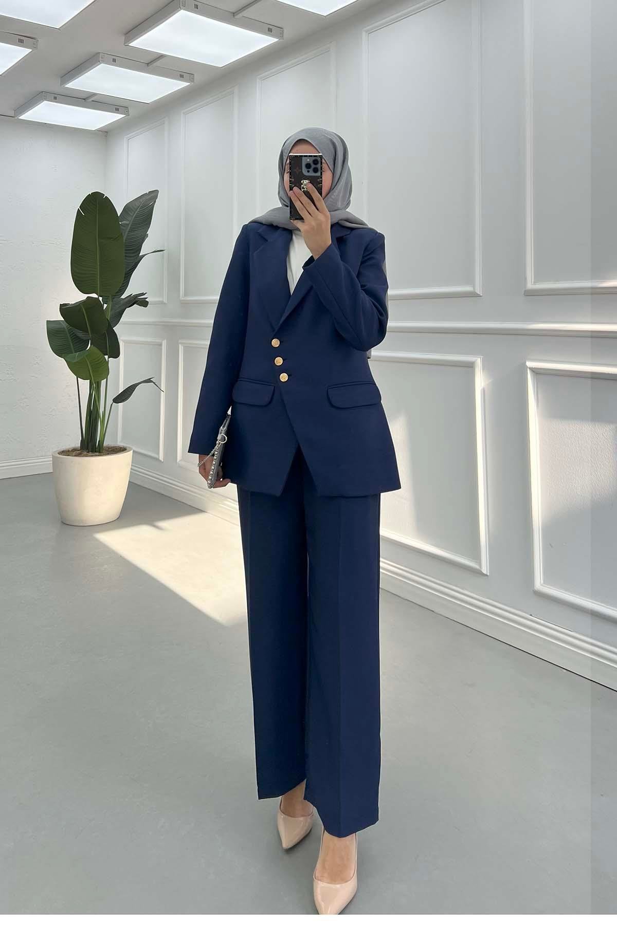 Asimetrik Kesim Astarlı Ceket Takım Lacivert (PDLN3106)