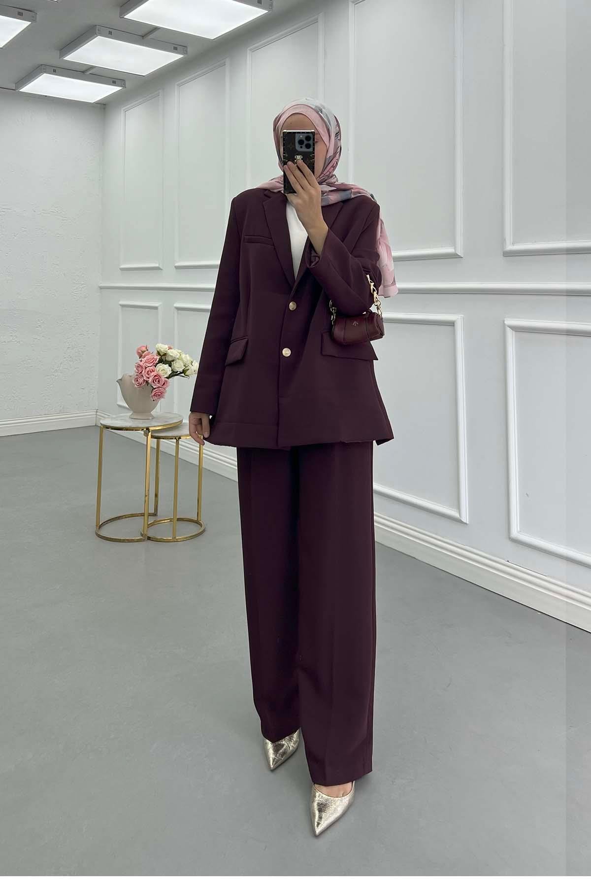 Astarlı Ceket Pantalon Takım Mürdüm (PDPRY9418)