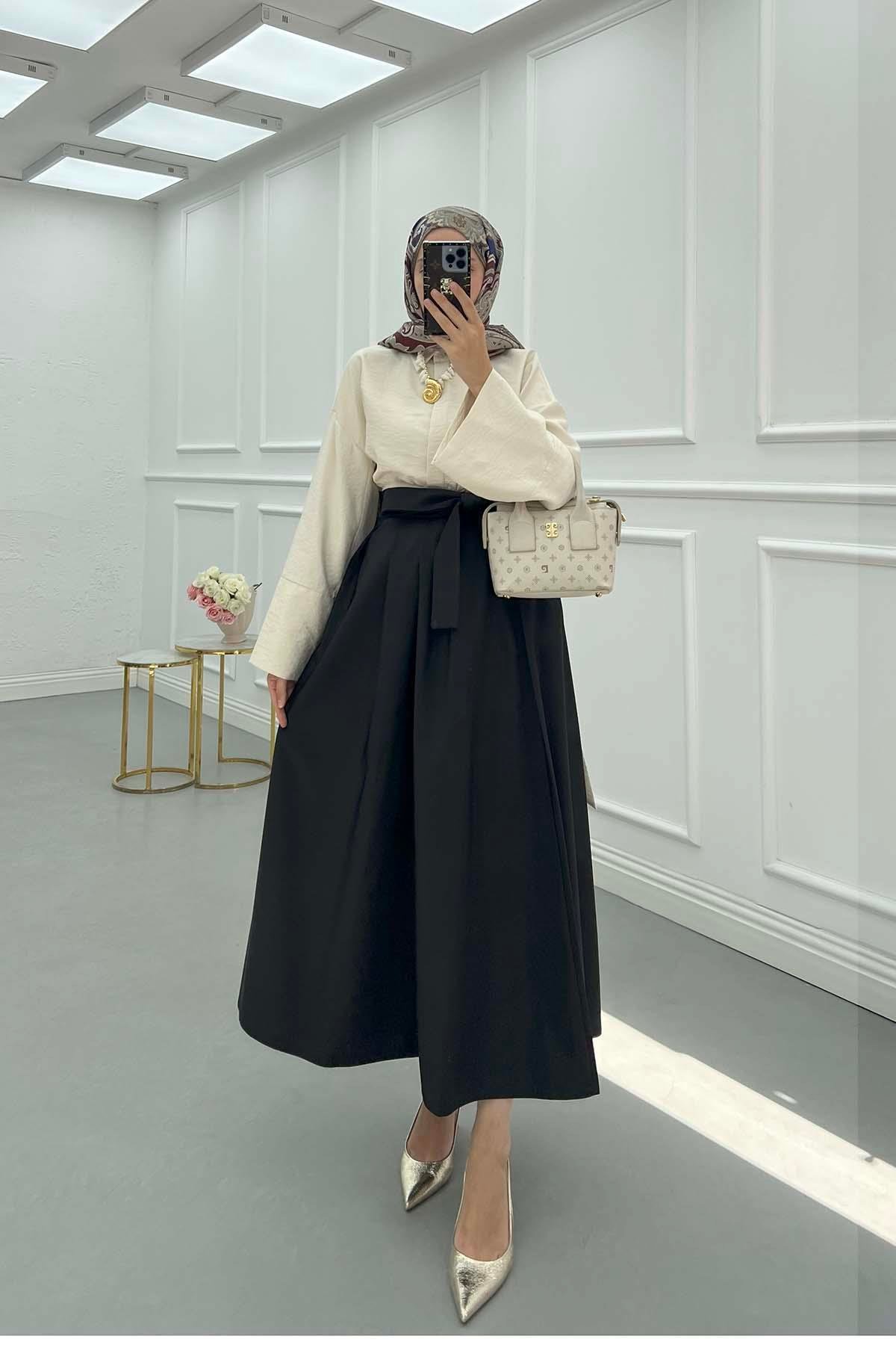 Belden Bağlamalı Fermuarlı Paraşüt Etek Siyah (PDSAS12952)