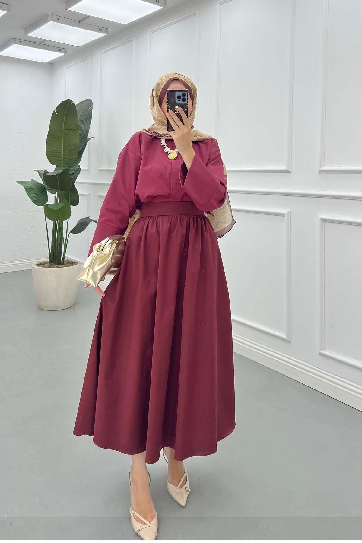 Beli Fermuarlı Etek İndigo Beli Fermuarlı Etek Bordo