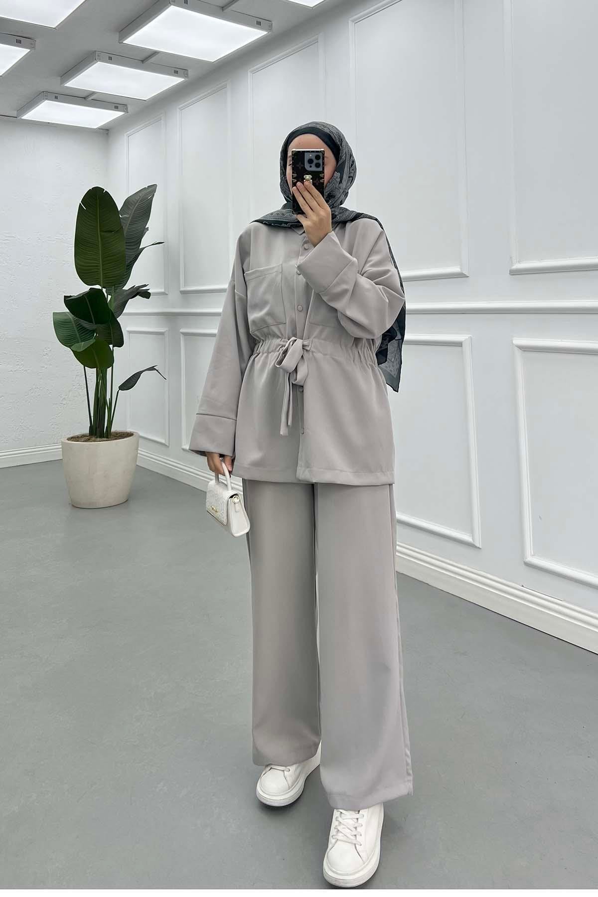 Beli Lastikli Bağlamalı Takım Gri (PDHTA8899)