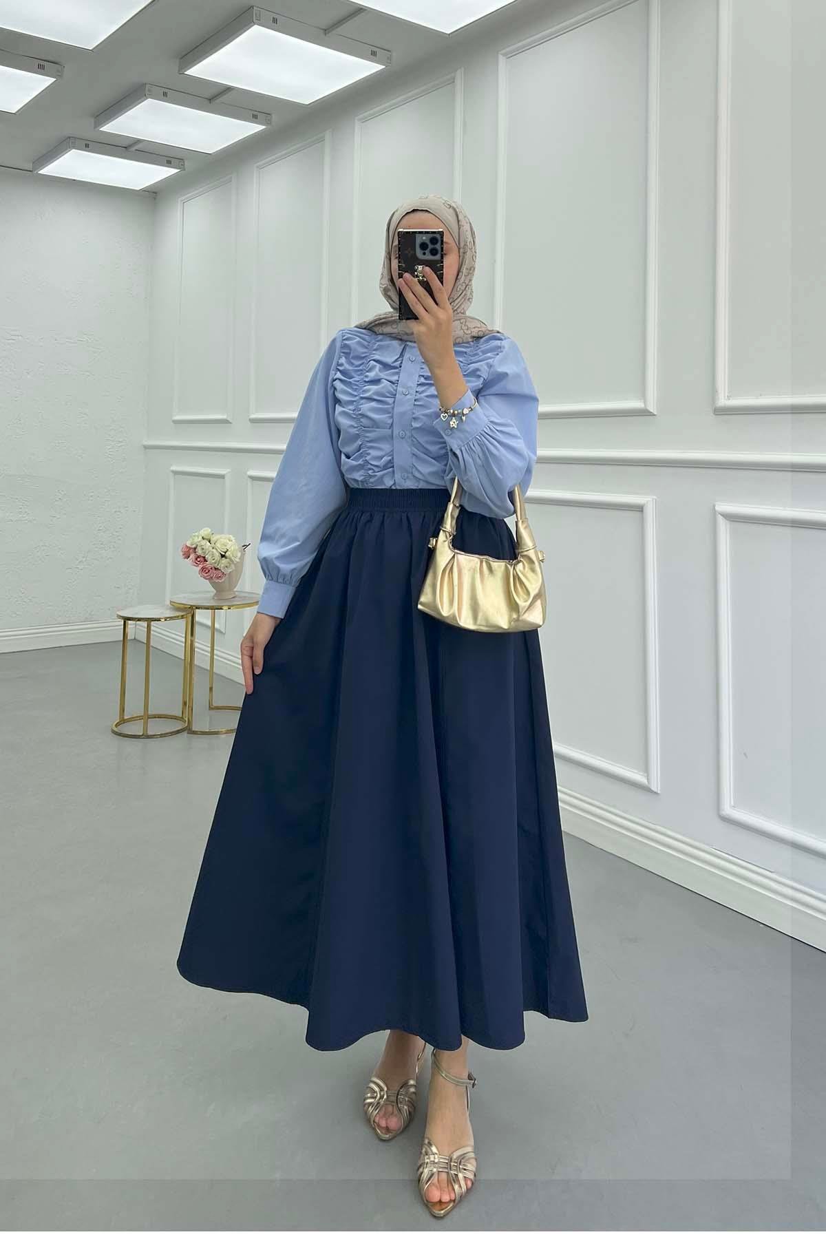 Beli Lastikli Poplin Etek Lacivert (PDVR107)