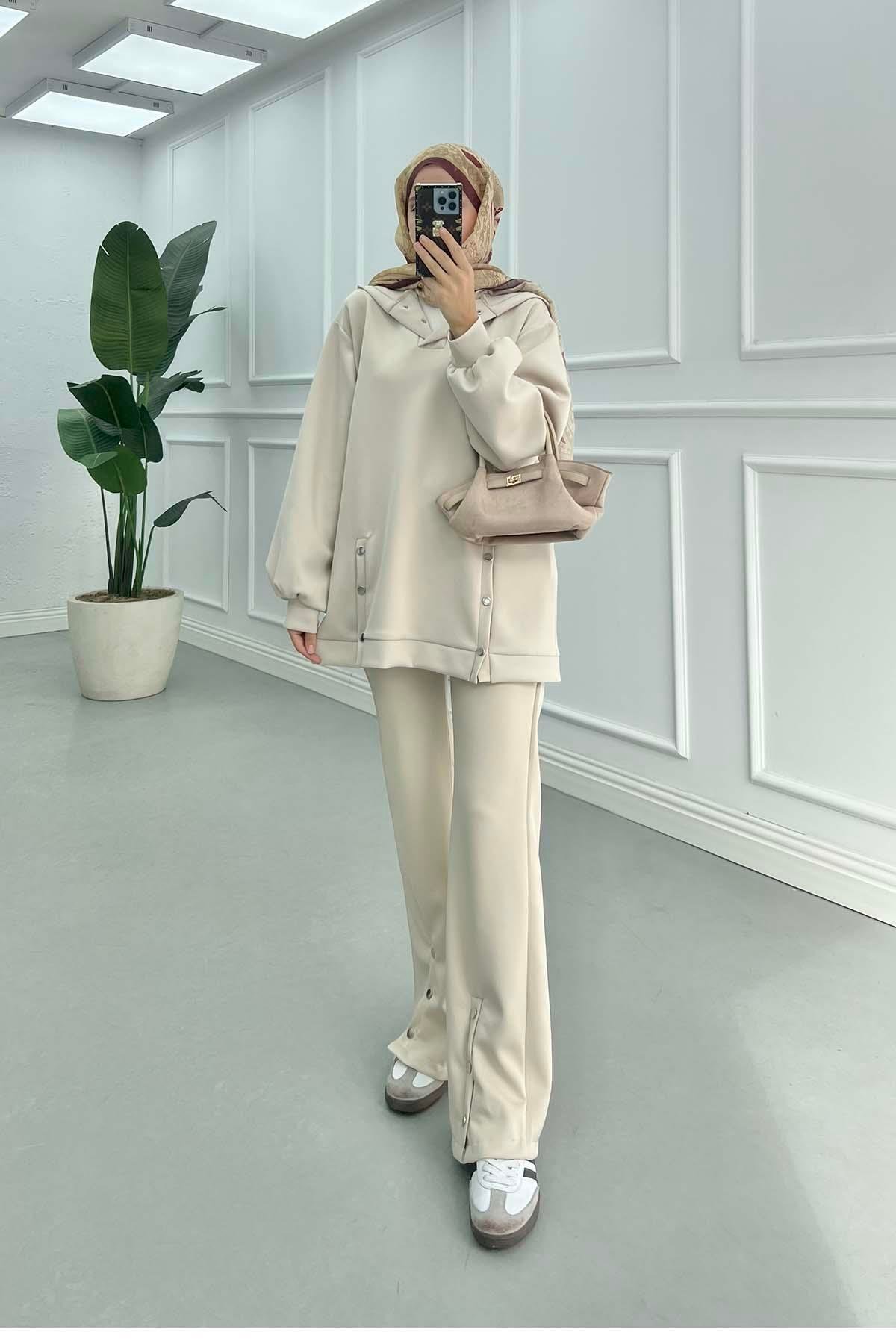 Çıtçıtlı Kapüşonlu Scuba Takım Bej (PD3282C)