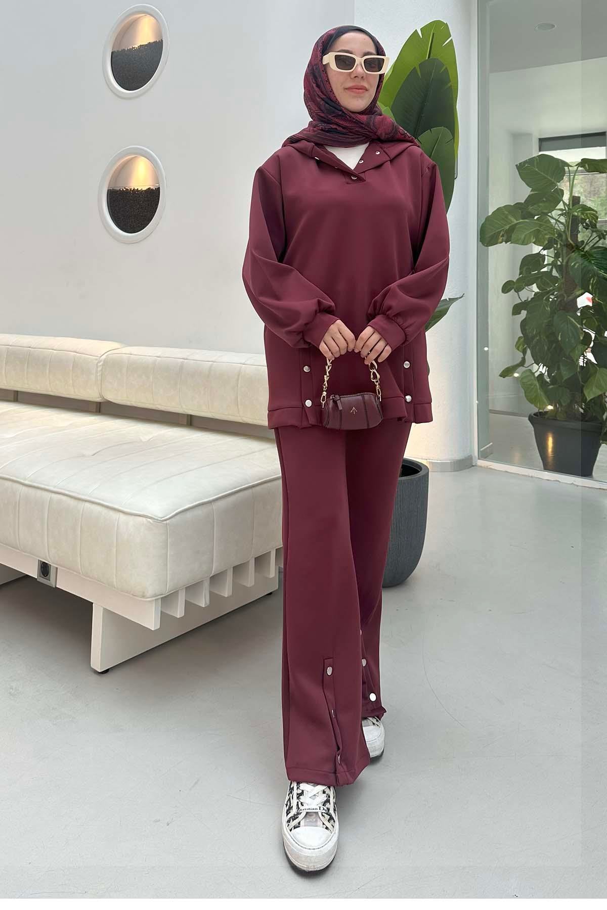 Çıtçıtlı Kapüşonlu Scuba Takım Bordo (PD3282C)