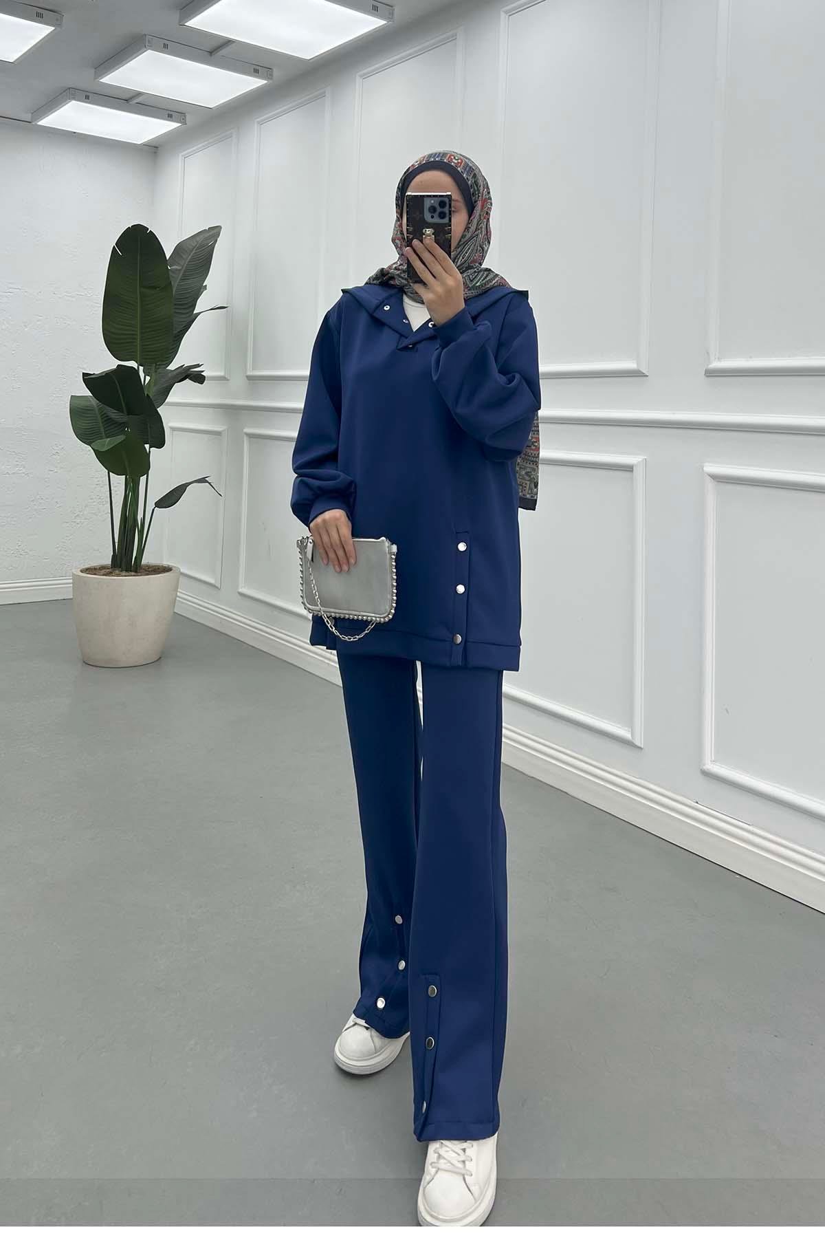 Çıtçıtlı Kapüşonlu Scuba Takım Saks Mavi (PD3282C)