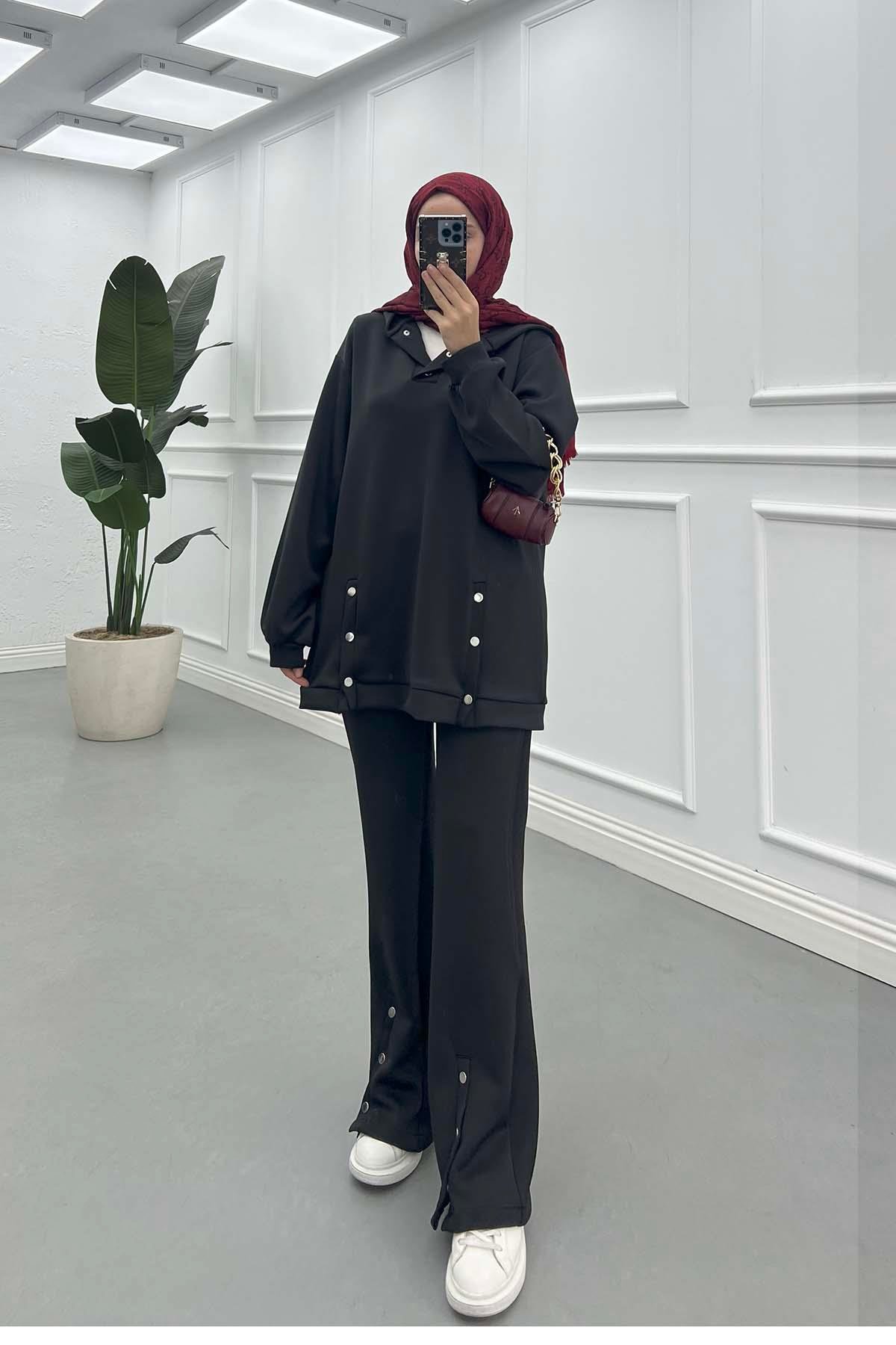 Çıtçıtlı Kapüşonlu Scuba Takım Siyah (PD3282C)
