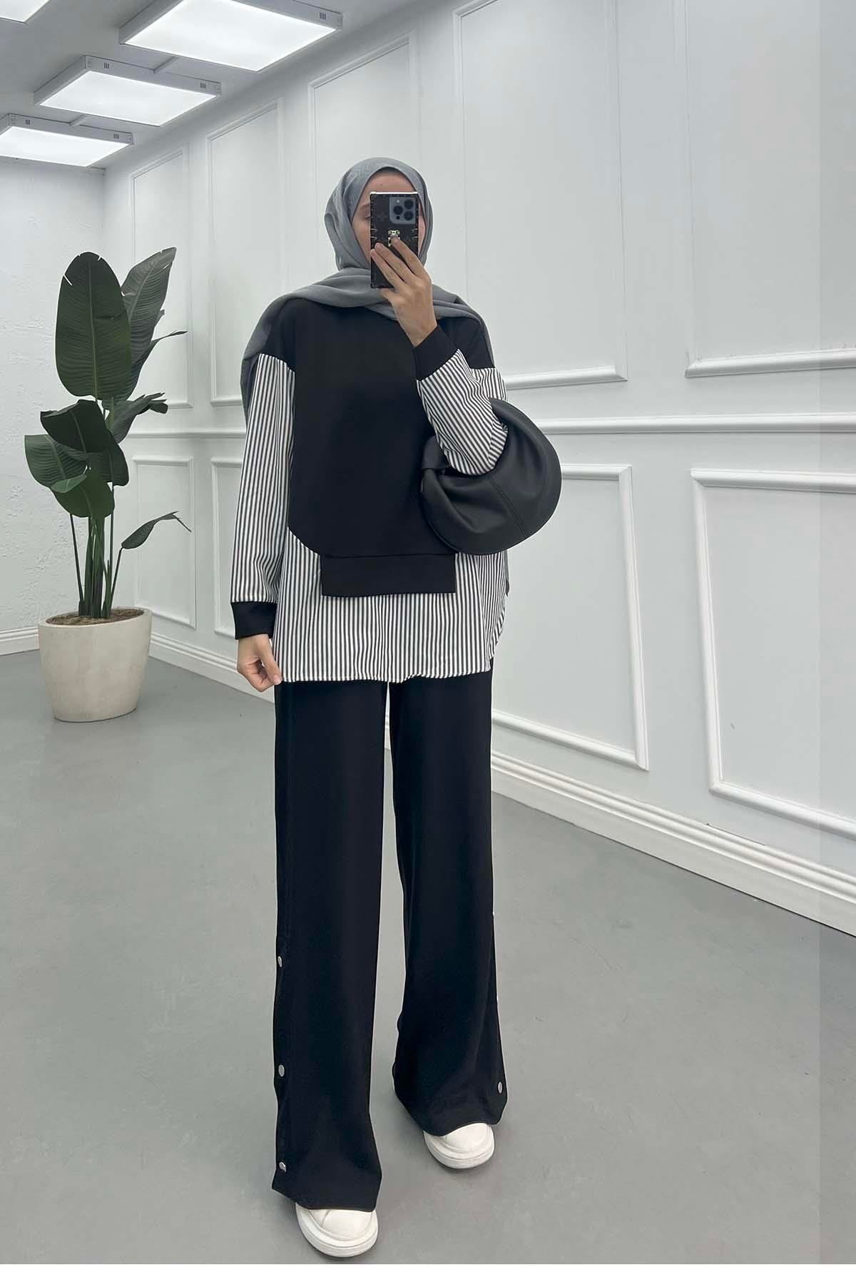 Çizgi Detaylı Tunik Siyah- Beyaz (PDMA117)