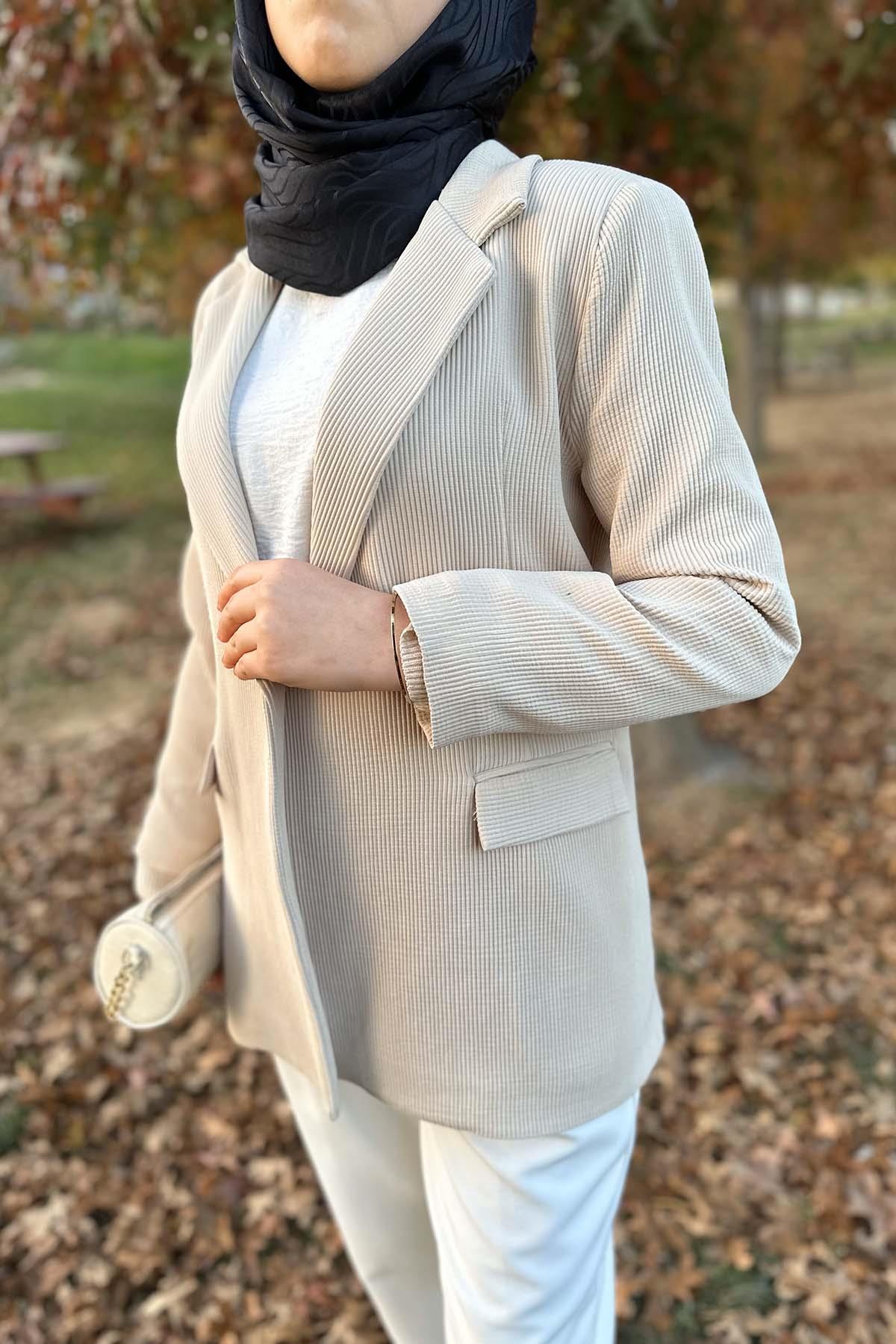 Çizgi Dokulu Ceket Bej (PDSAS12821)