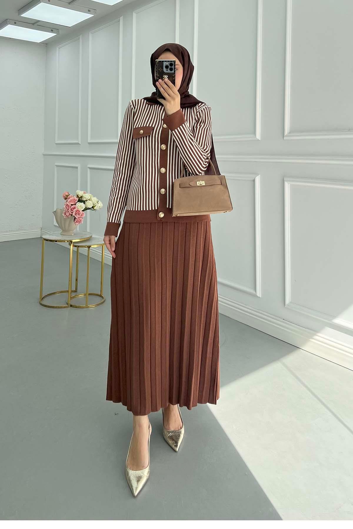 Çizgili Triko Etekli Takım Kahve (PDGX12023)