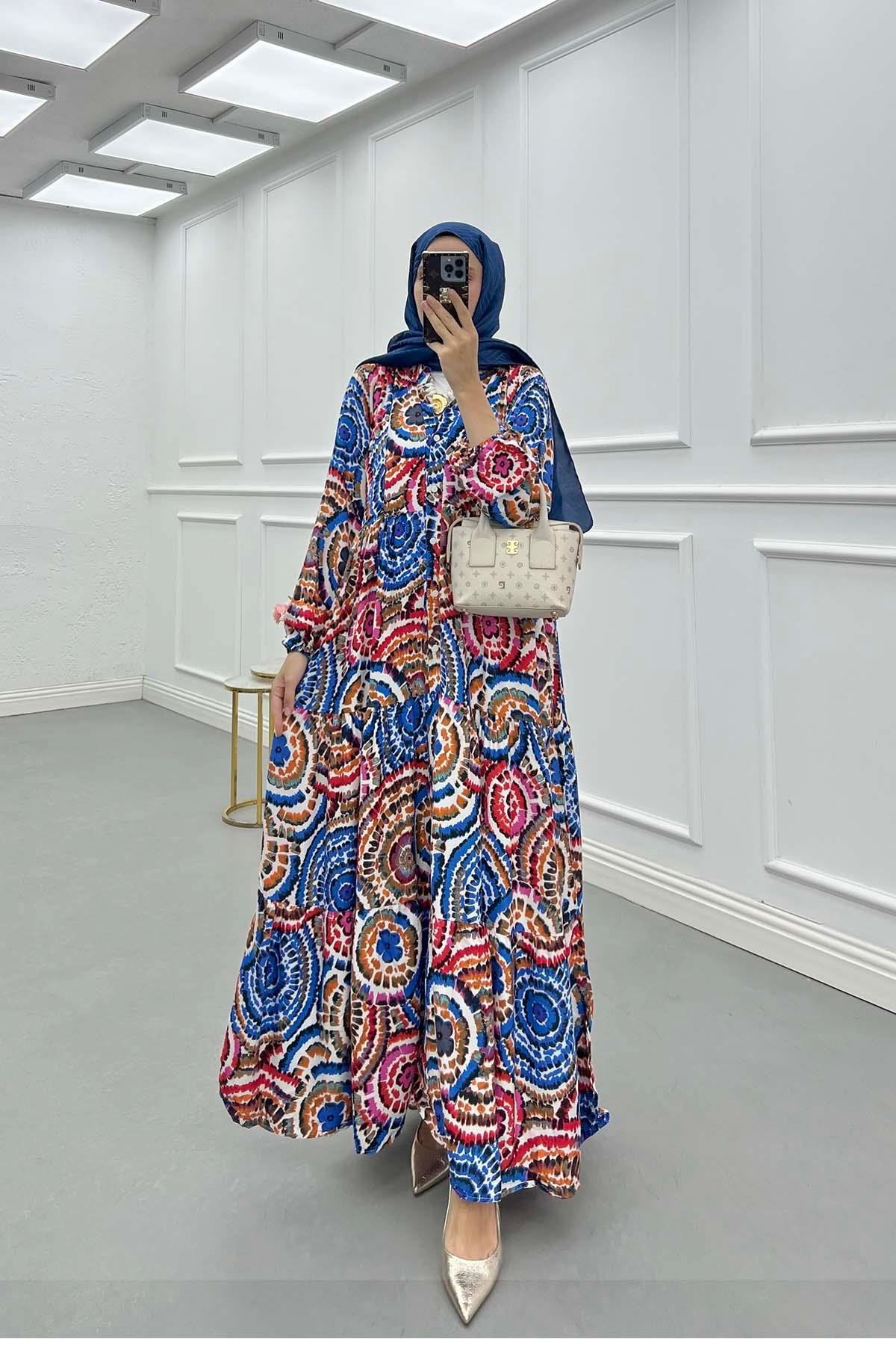Desenli Viskon Elbise Çok Renkli (PDRQ160)