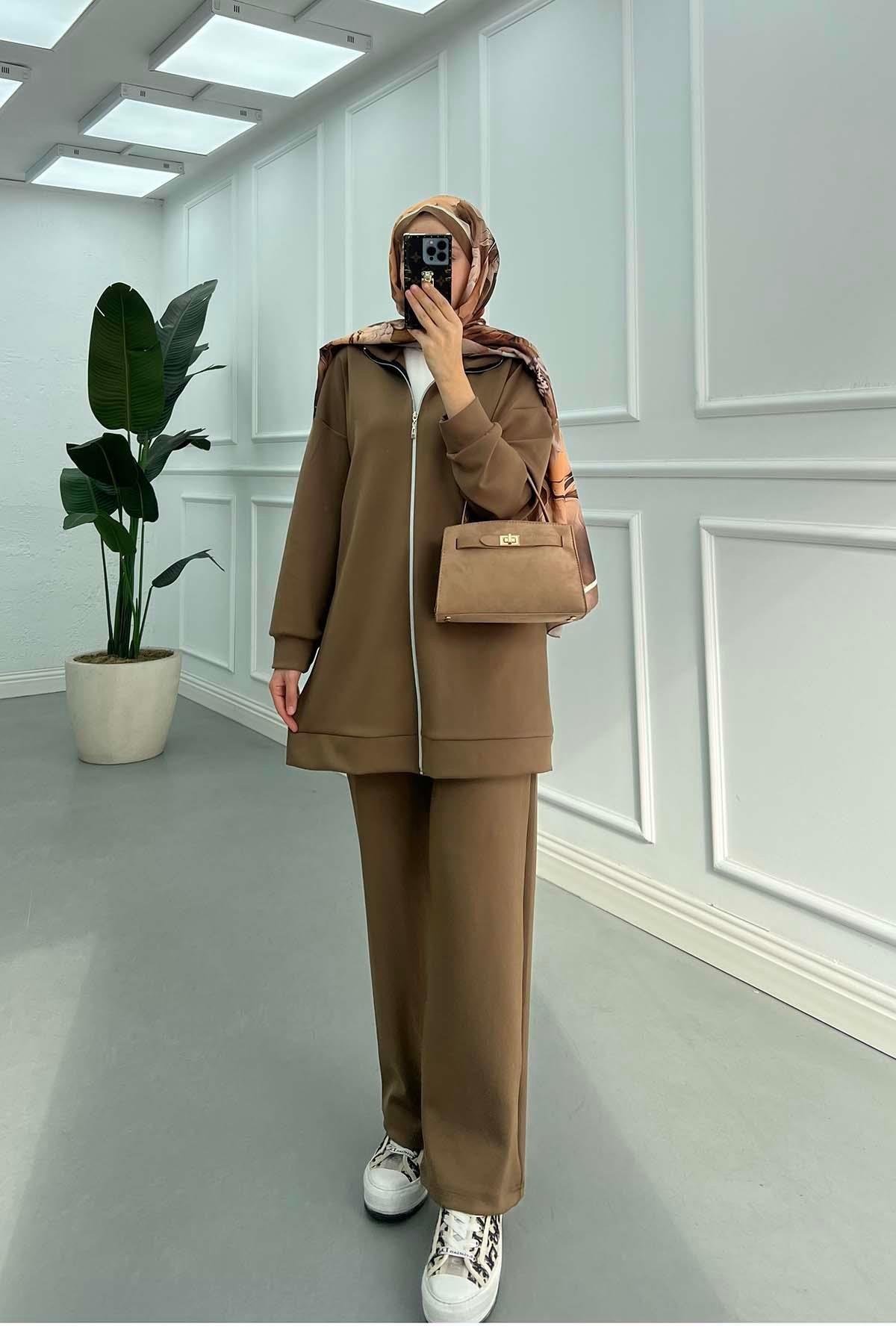 Fermuarlı Scuba Takım Kahve (PD3281C)