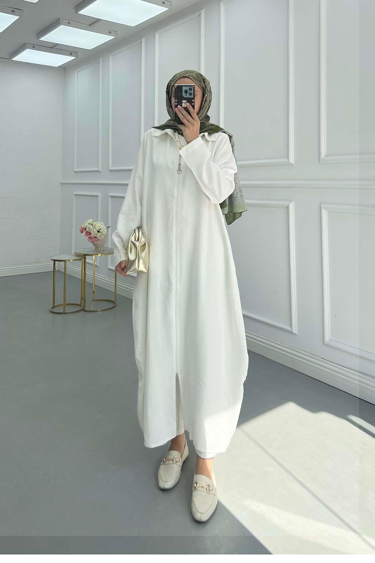 Fermuarlı Uzun Tunik Beyaz (PDQM6032)