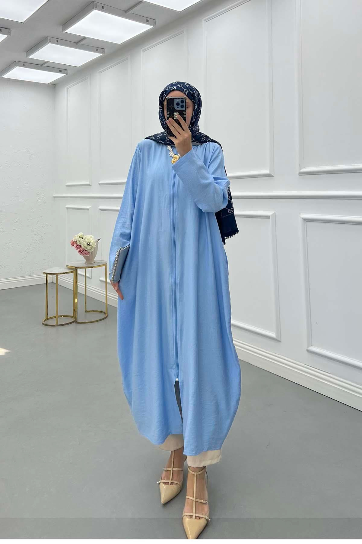 Gömlek Yaka Fermuarlı Kap Bebe Mavi