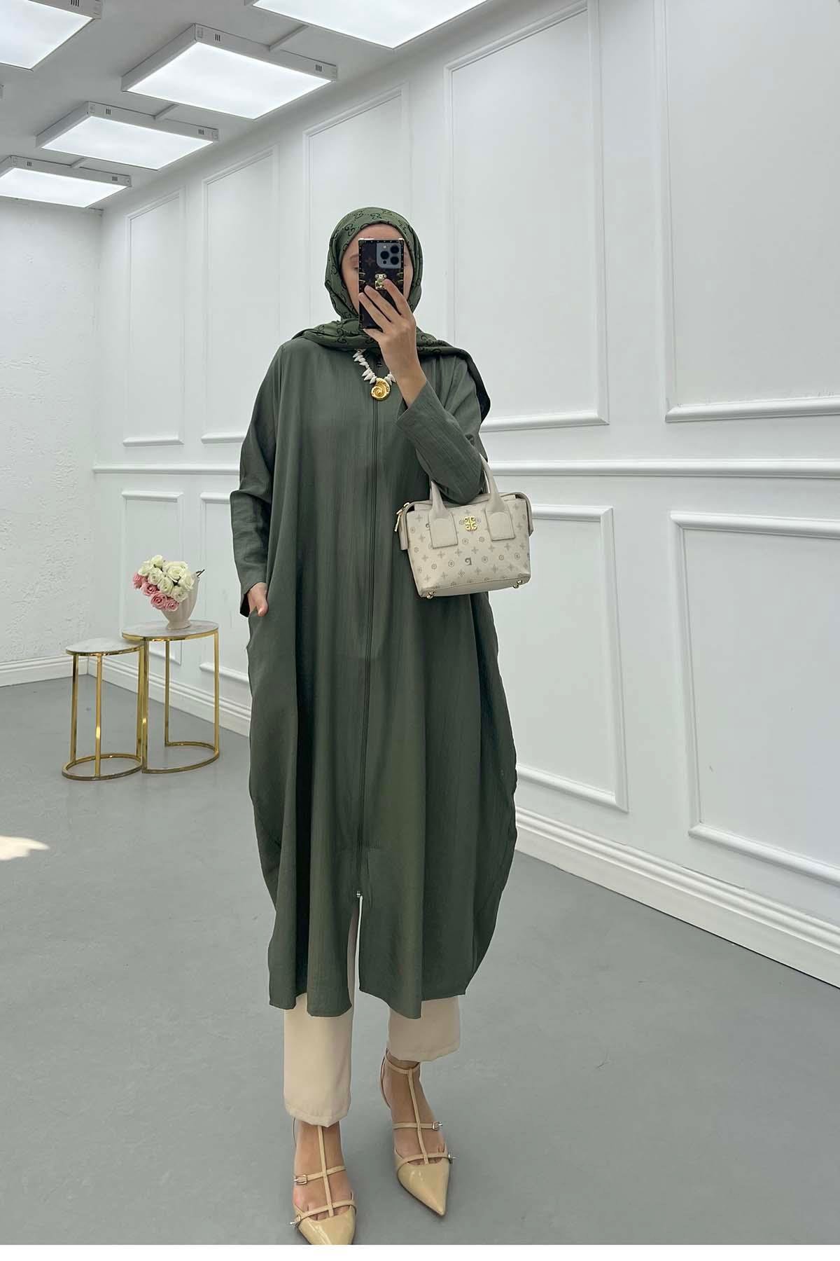 Gömlek Yaka Fermuarlı Kap Haki (PDQM6033)
