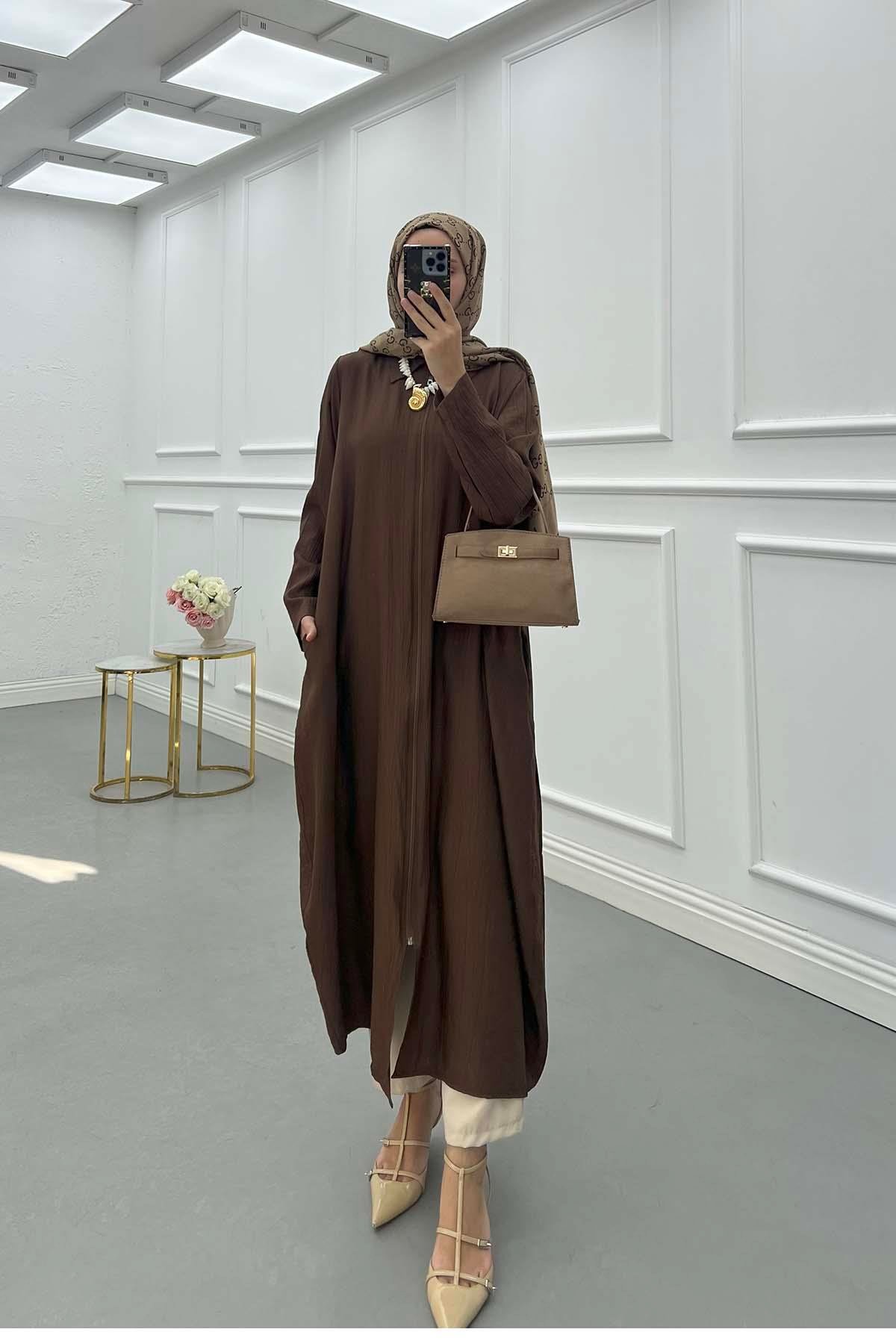 Gömlek Yaka Fermuarlı Kap Kahve (PDQM6033)