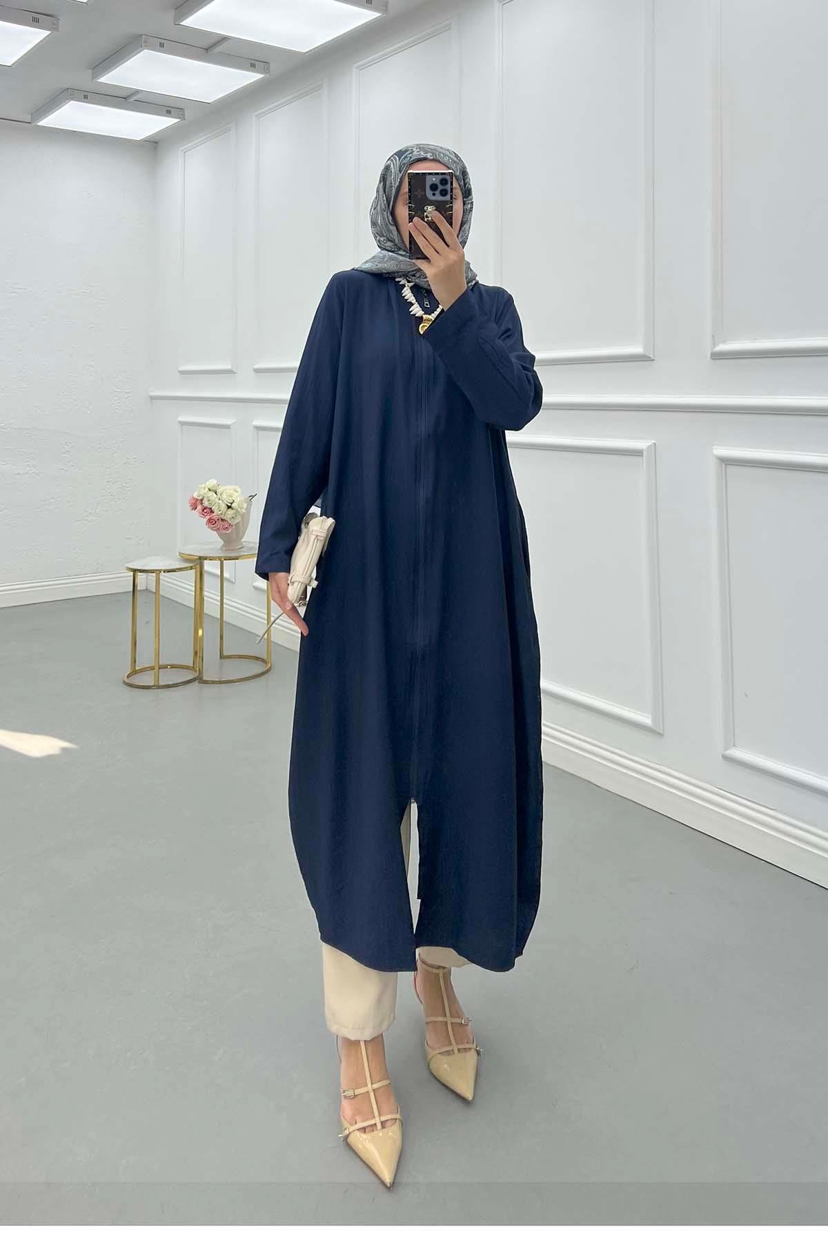 Gömlek Yaka Fermuarlı Kap Lacivert