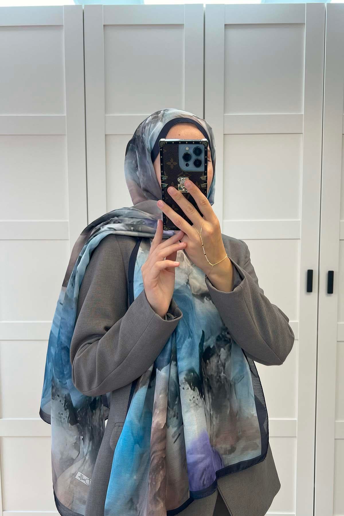 Gül Desenli Şal Mavi - Lacivert (PD442)