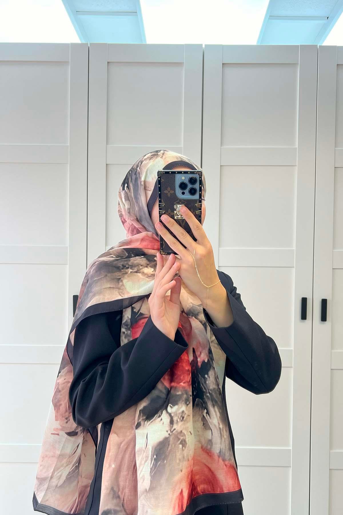 Gül Desenli Şal Siyah-Kırmızı (PD442)
