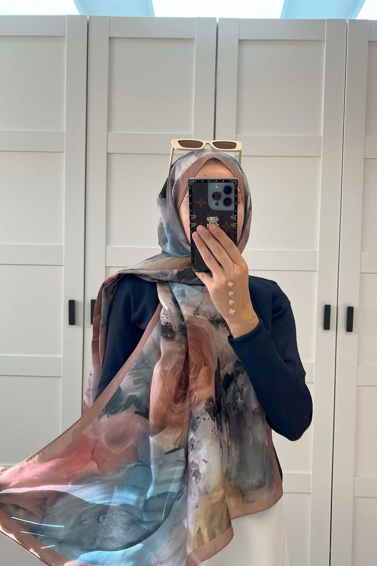 Gül Desenli Şal Sütlü Kahve (PD442)