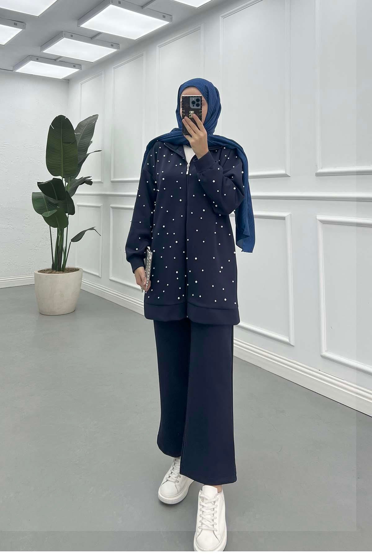 İncili Fermuarlı Scuba Takım Lacivert (PD3281)