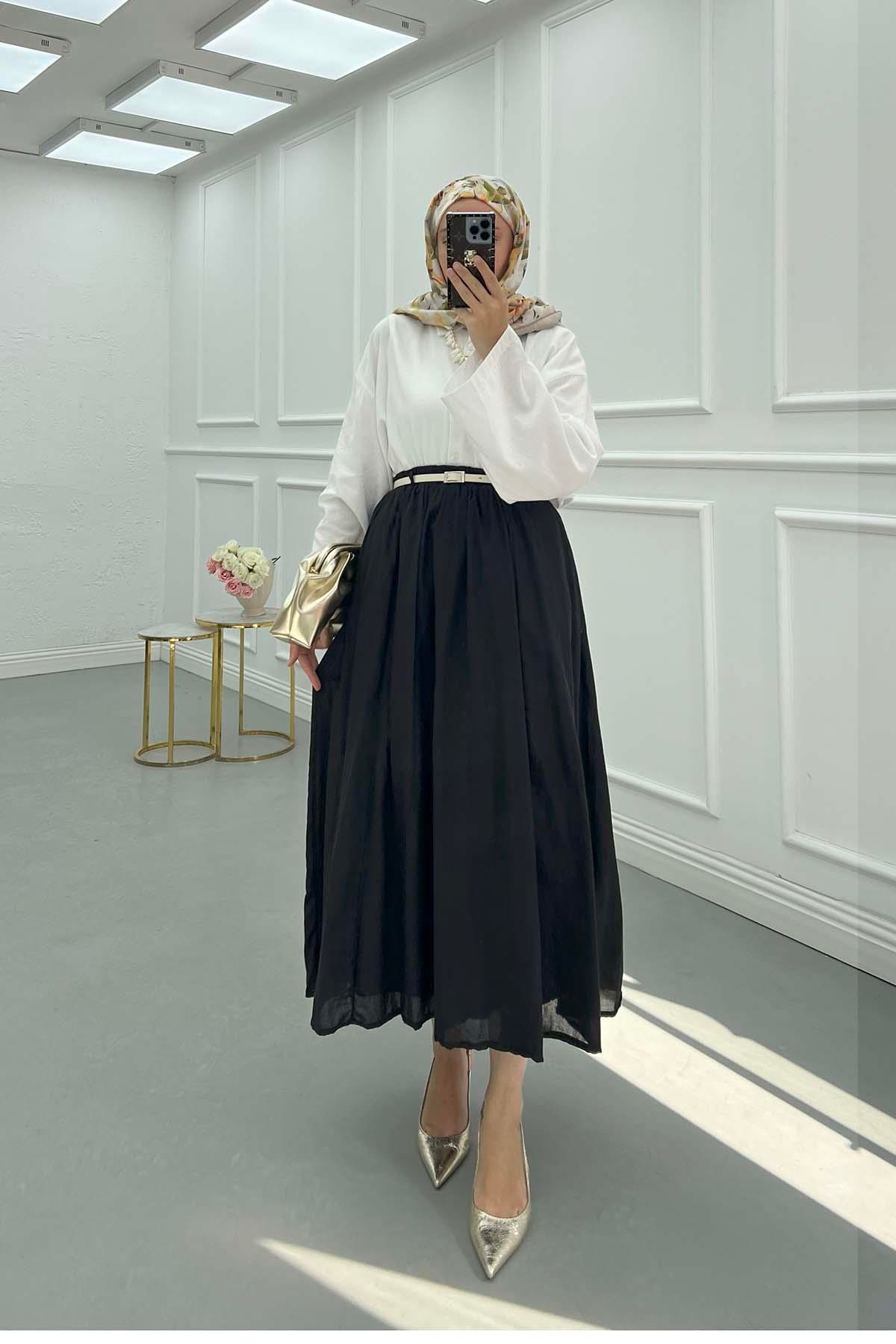 Kemerli (Astarlı) Vual Etek Beyaz Kemerli (Astarlı) Vual Etek Siyah