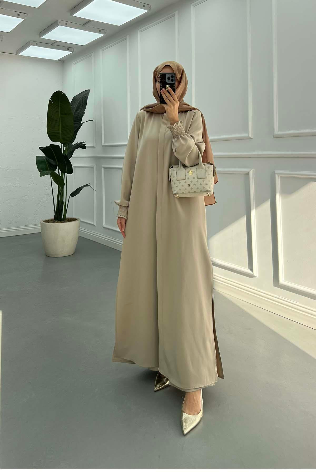 Kol Detaylı Gizli Düğme Krep Takım Bej (PD3353)