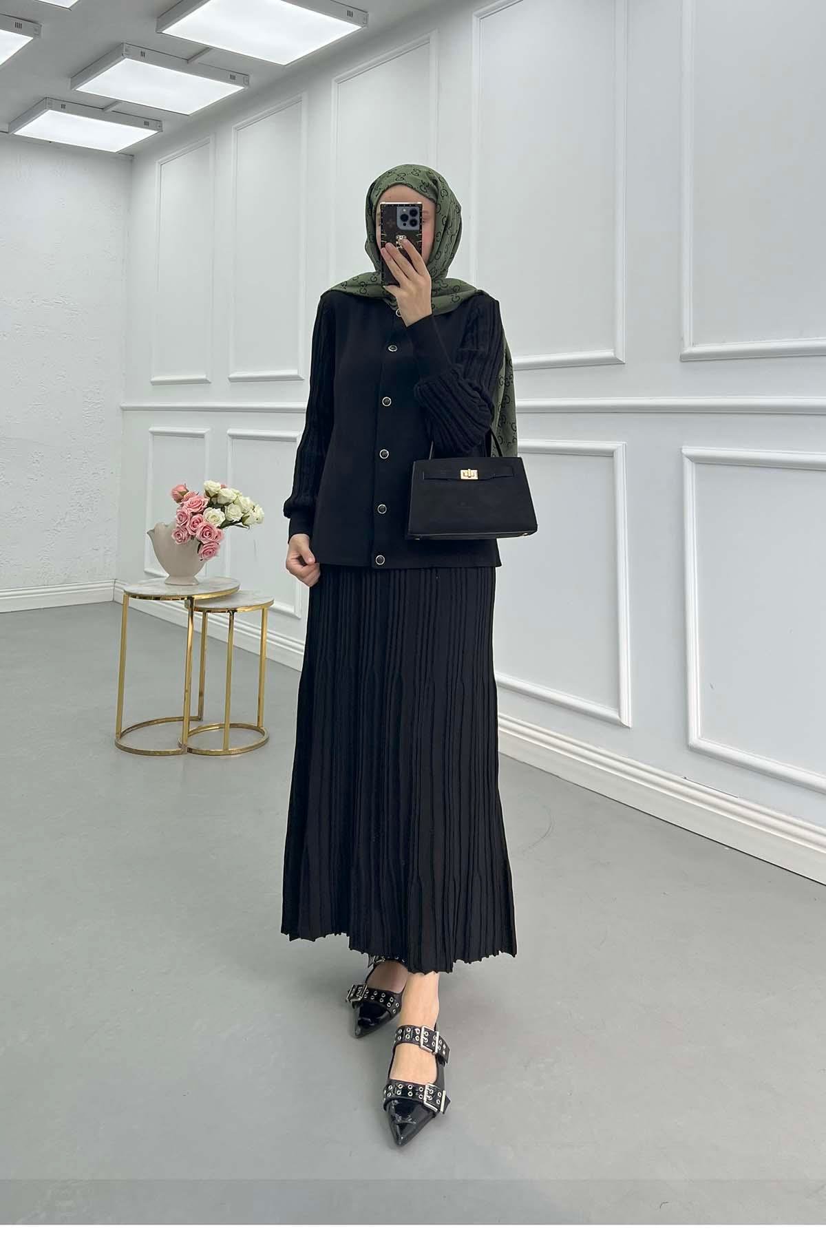 Kolları Simli Etekli Triko Takım Siyah (PDGX14045)