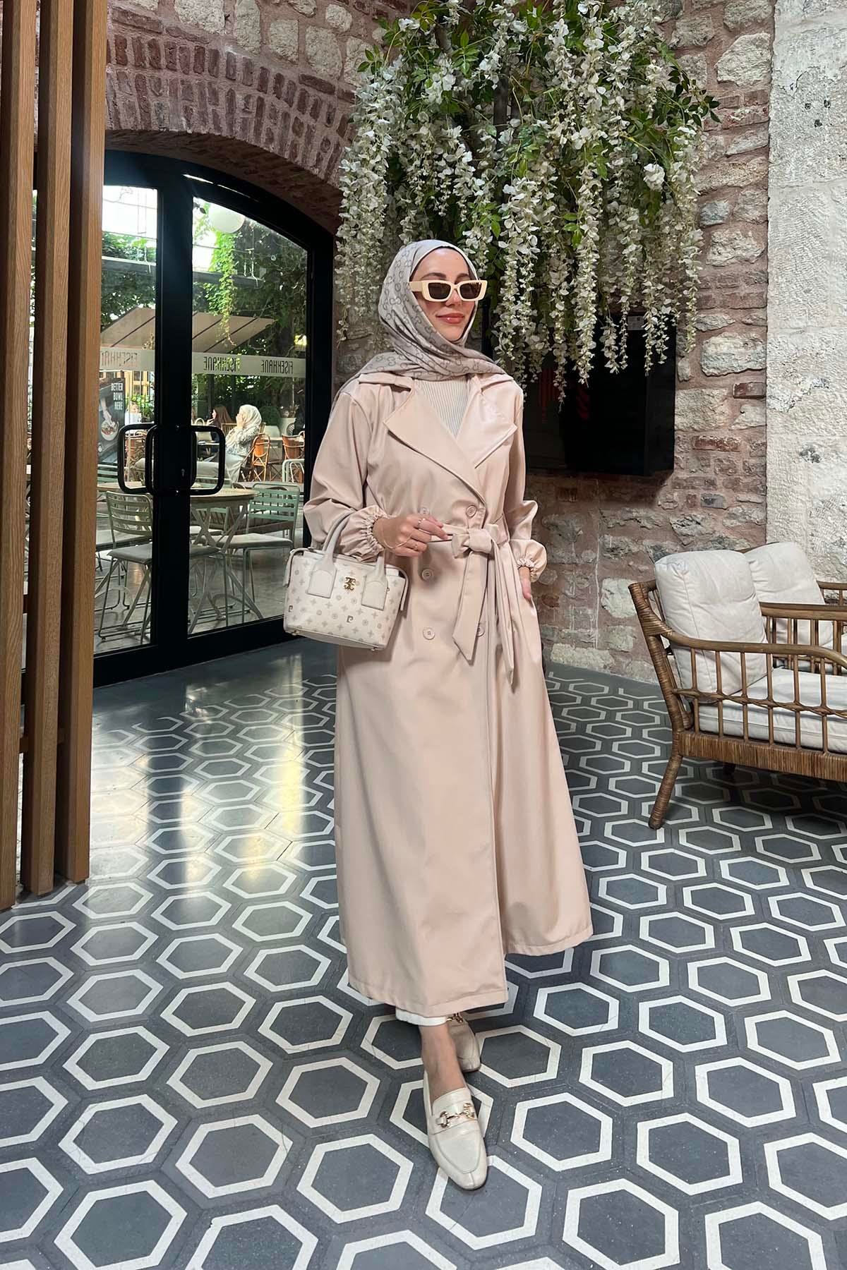 Kolu Lastikli Kuşaklı Trençkot Bej (PDŞIK174)