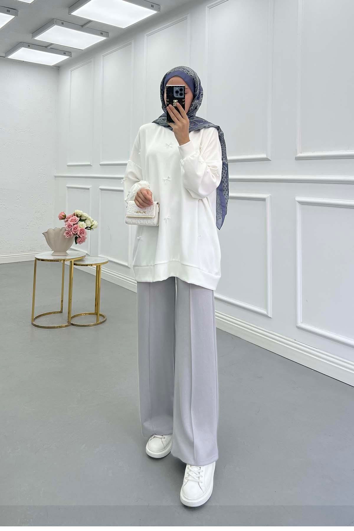 Kurdeleli Oysh Tunik Beyaz (PDMA116)