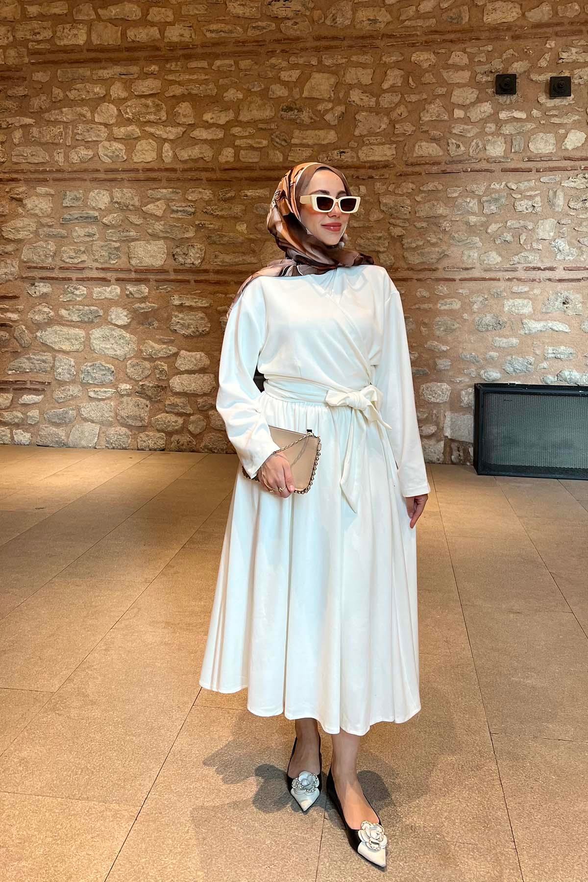 Önden Bağlamalı Etekli Oysho Takım Beyaz