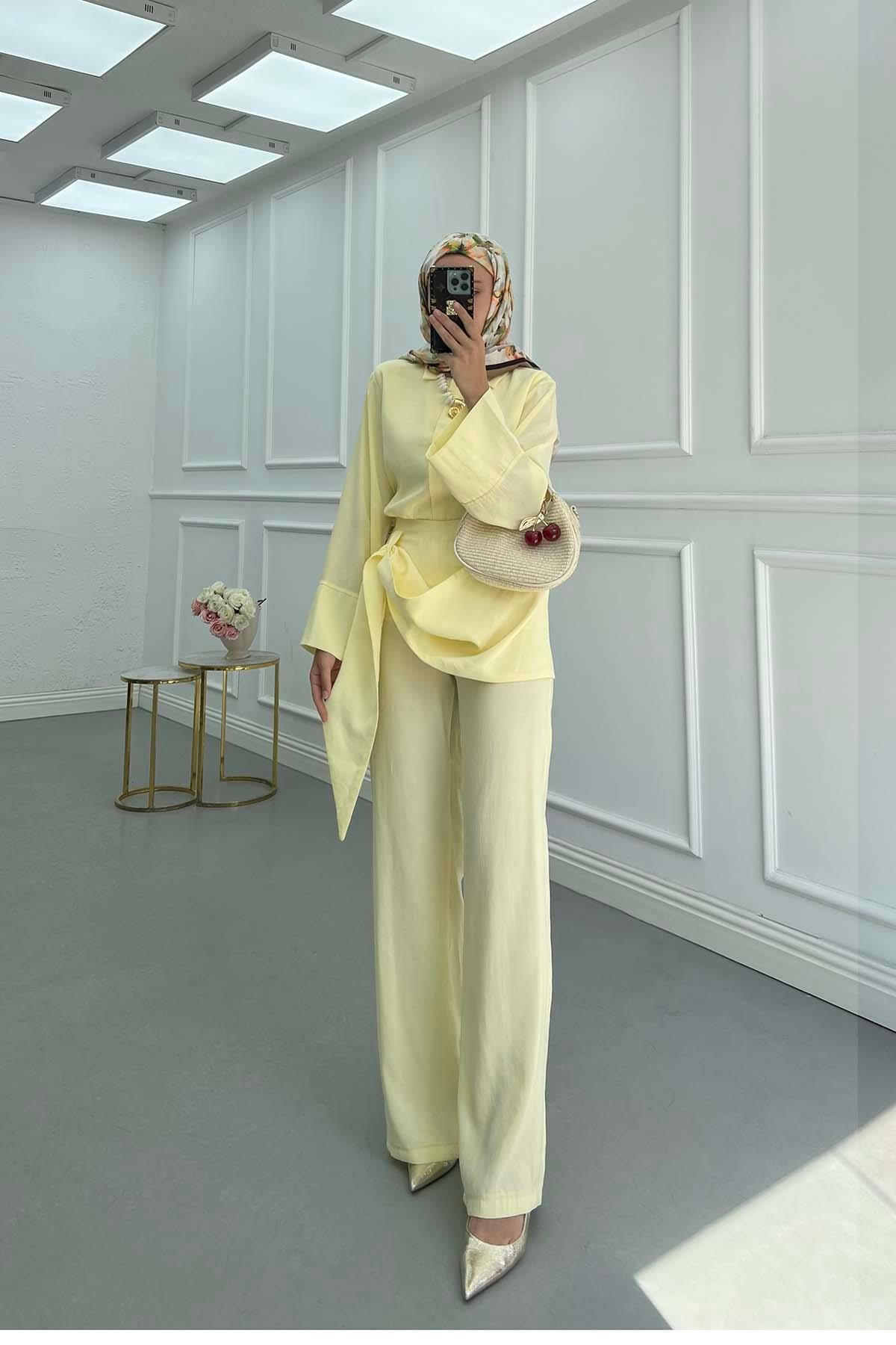Pantolonu Kendinden Kuşaklı Tensel Takım Yağ Sarısı (PDTB3362)