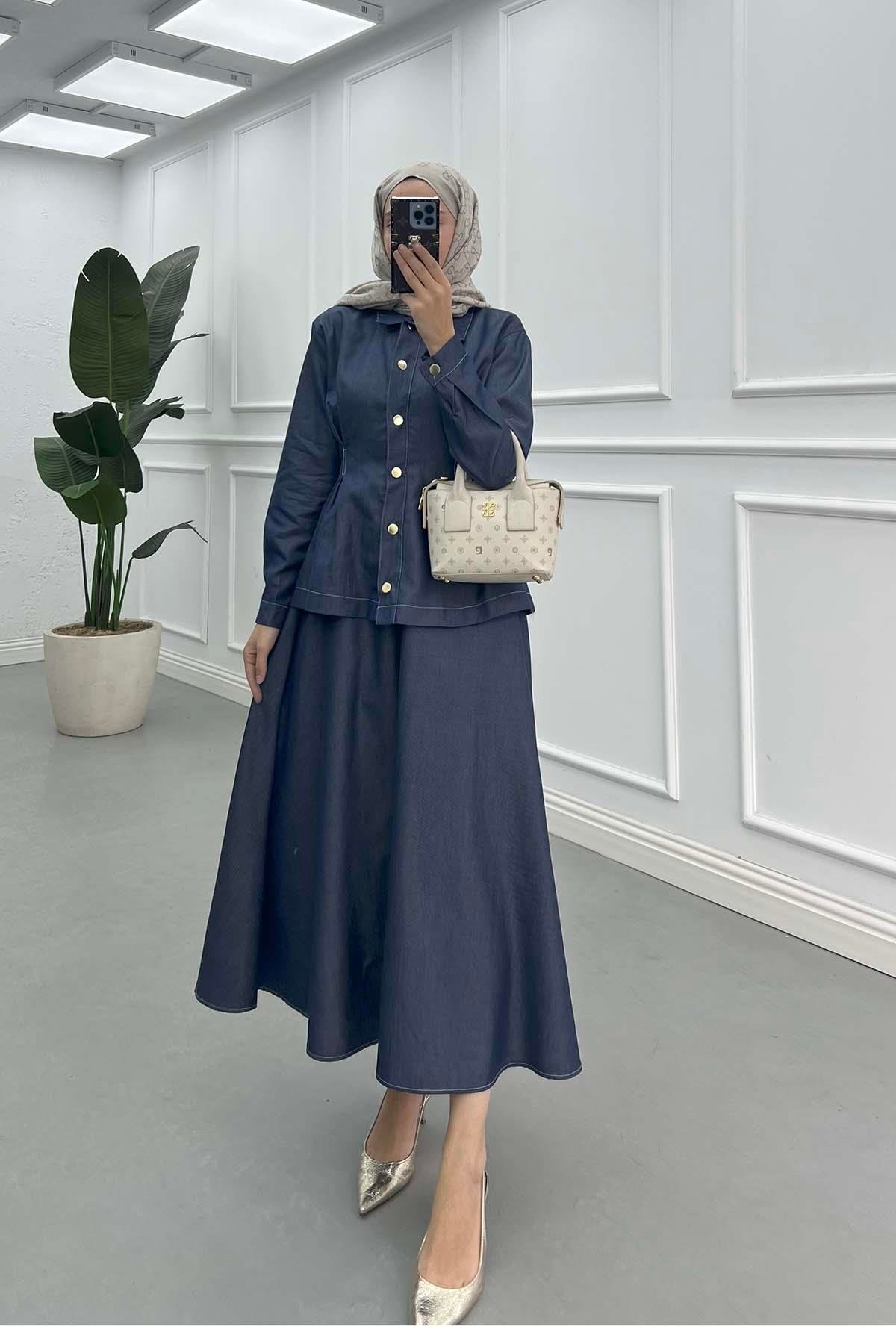 Pens Detaylı Etekli Kot Takım Mavi (PD3350B)