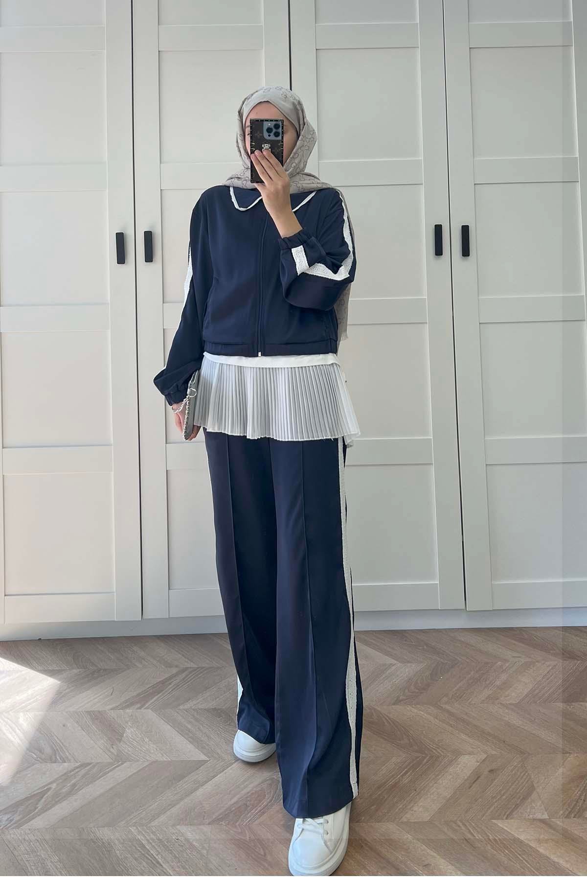 Saten İpek Spor Takım Siyah Saten İpek Spor Takım Lacivert