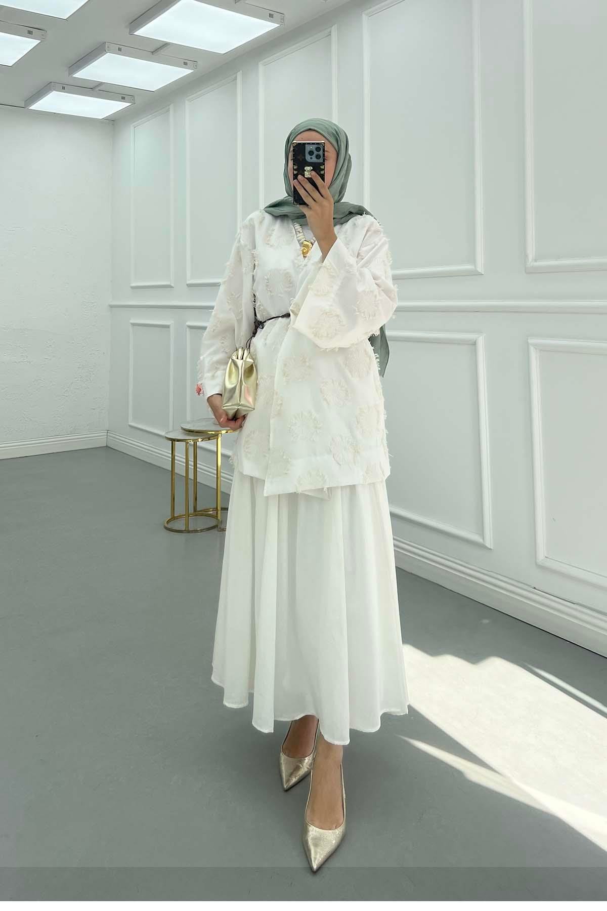 Seyyar Kuşaklı Püsküllü Takım Beyaz (PDHTA8865)