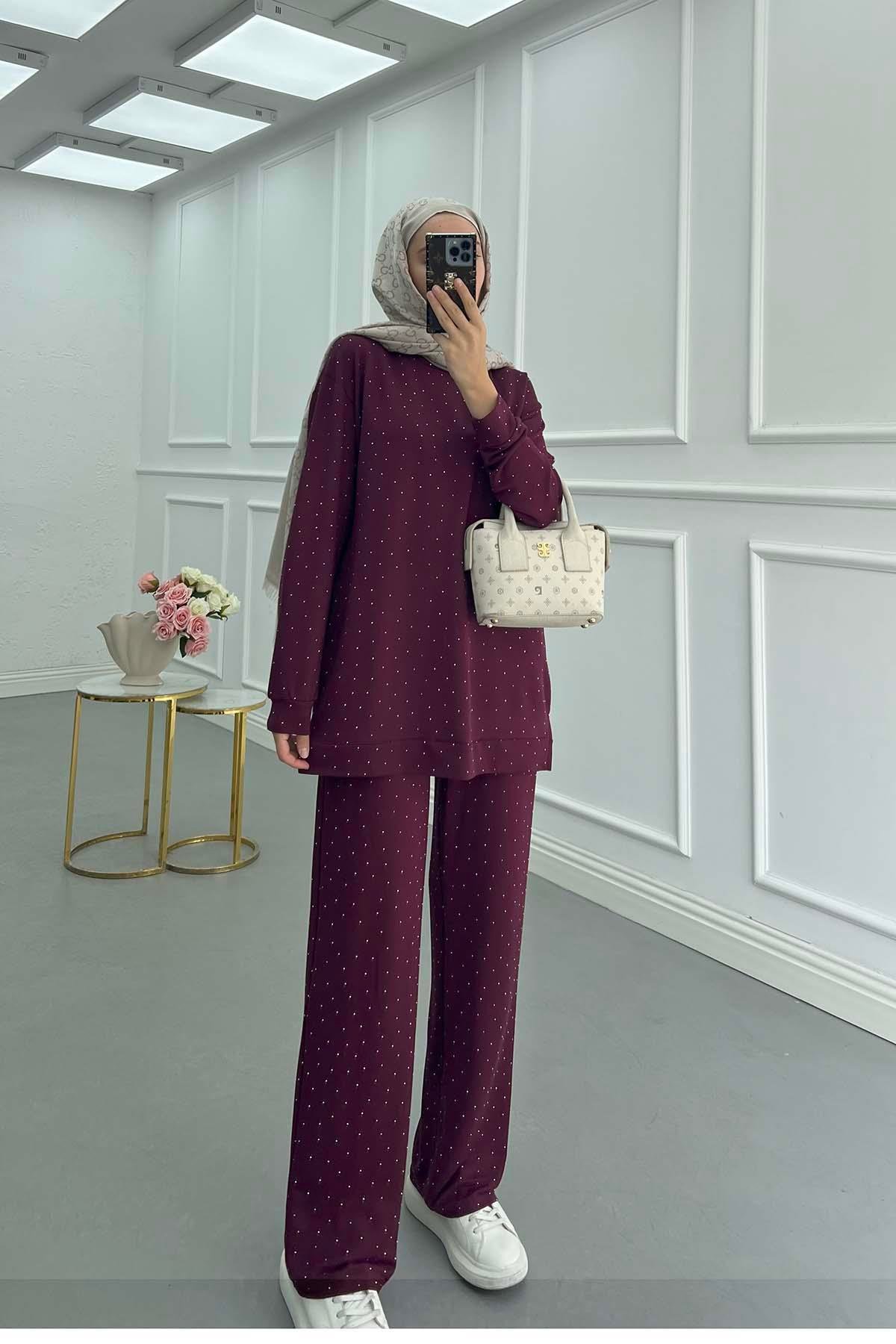 Taşlı Beli Lastikli Oysh Takım Bordo (PDSAS13075)