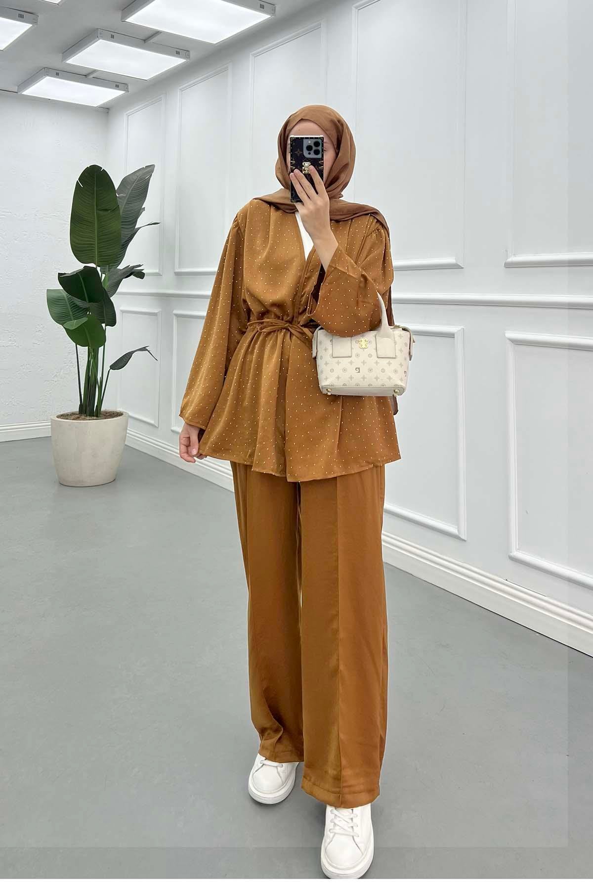 Taşlı Kimono Takım Taba (PDHTA3007)