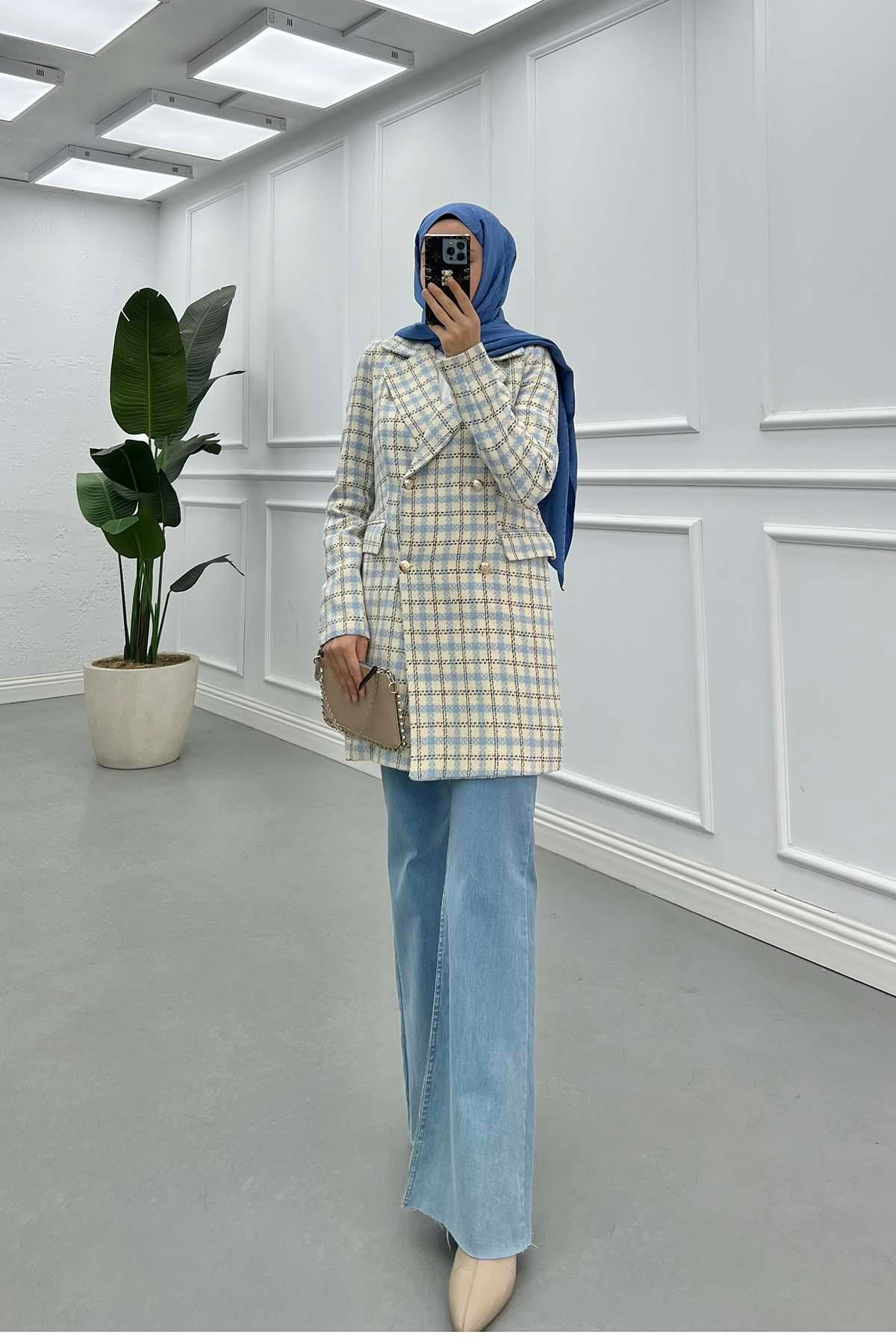 Uzun Astarlı Tuvit Ceket Bebe Mavi (PDPH2972)