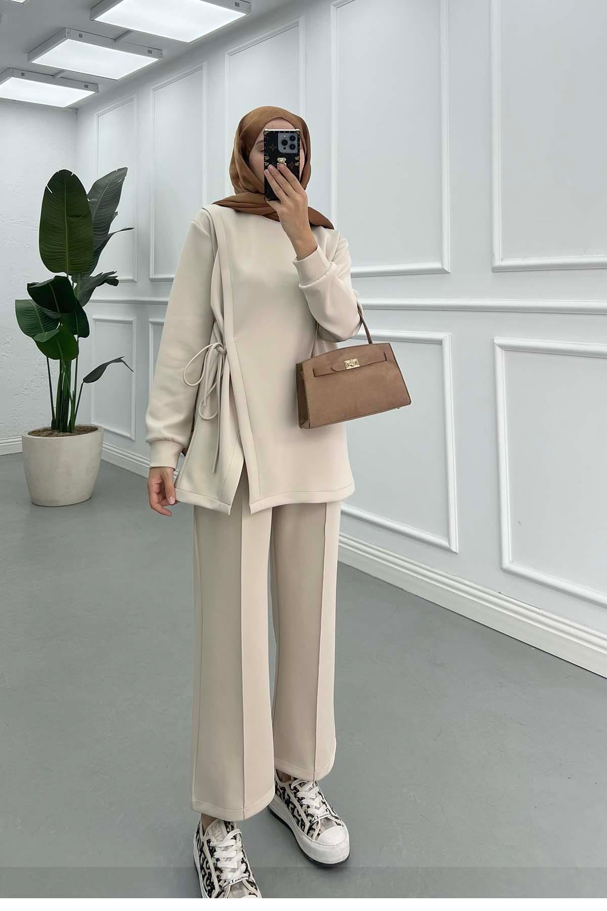 Yandan Bağlamalı Scuba Takım Bej (PD3352)