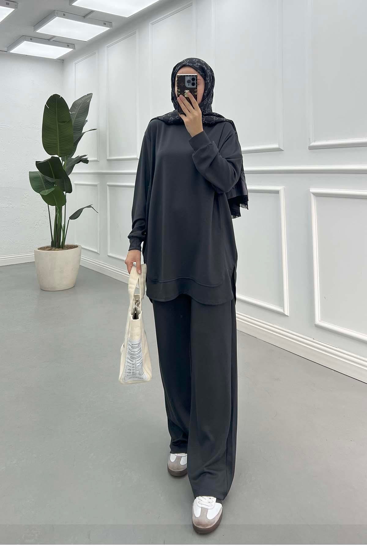 Yanı Yırtmaçlı Arkası Uzun Oysh Takım Antrasit