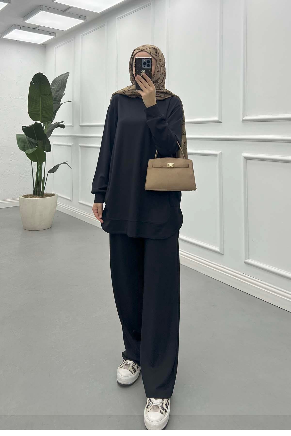 Yanı Yırtmaçlı Arkası Uzun Oysh Takım Siyah