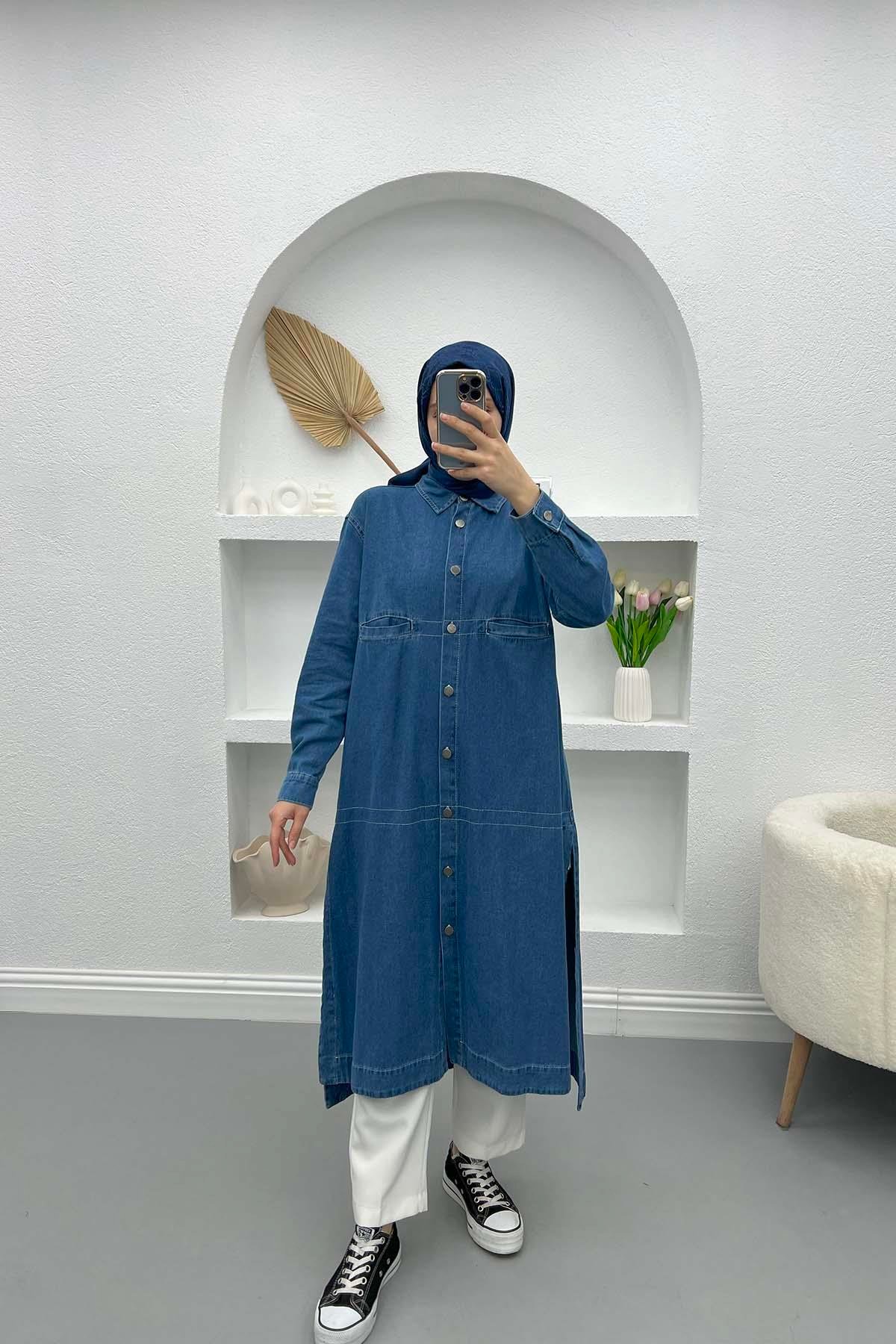 Yırtmaçlı Kot Tunik Açık Mavi Yırtmaçlı Kot Tunik Koyu Mavi